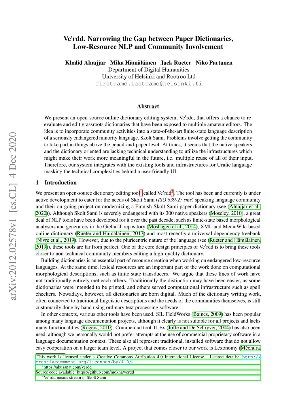 Ve'rdd. Narrowing the Gap between Paper Dictionaries, Low-Resource NLP