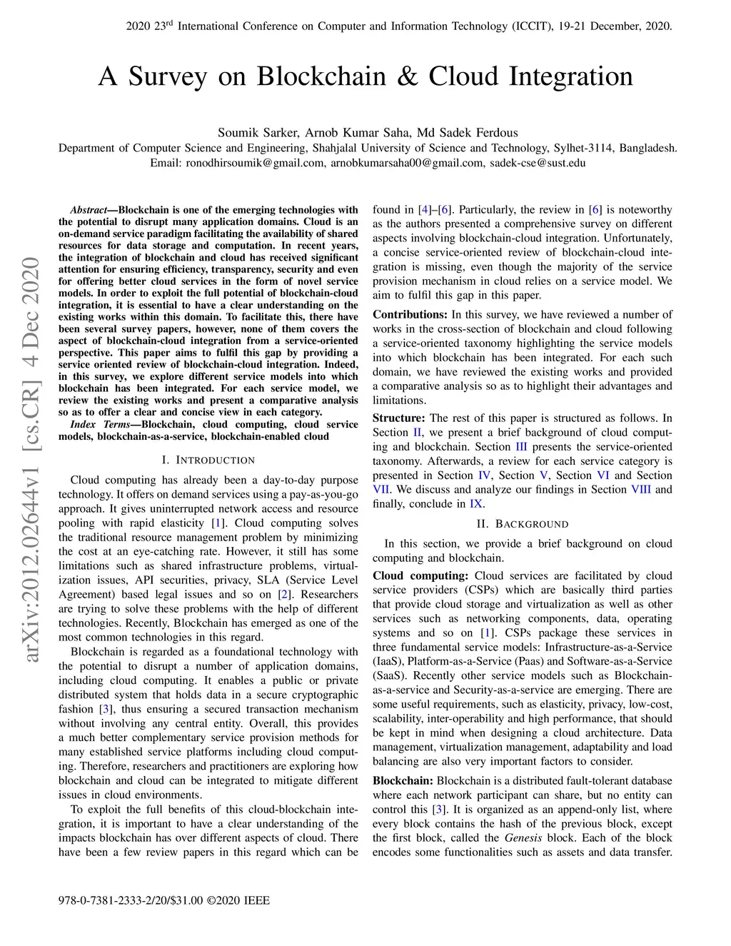 Blockchain is one of the emerging technologies with the potential to disrupt many application domains. Cloud is an on-demand service paradigm facilitating the availability of shared resources for data storage and computation. In recent years, the integration of blockchain and cloud has received significant attention for ensuring efficiency, transparency, security and even for offering better cloud services in the form of novel service models. In order to exploit the full potential of blockchain-cloud integration, it is essential to have a clear understanding on the existing works within this domain. To facilitate this, there have been several survey papers, however, none of them covers the aspect of blockchain-cloud integration from a service-oriented perspective. This paper aims to fulfil this gap by providing a service oriented review of blockchain-cloud integration. Indeed, in this survey, we explore different service models into which blockchain has been integrated. For each service model, we review the existing works and present a comparative analysis so as to offer a clear and concise view in each category.