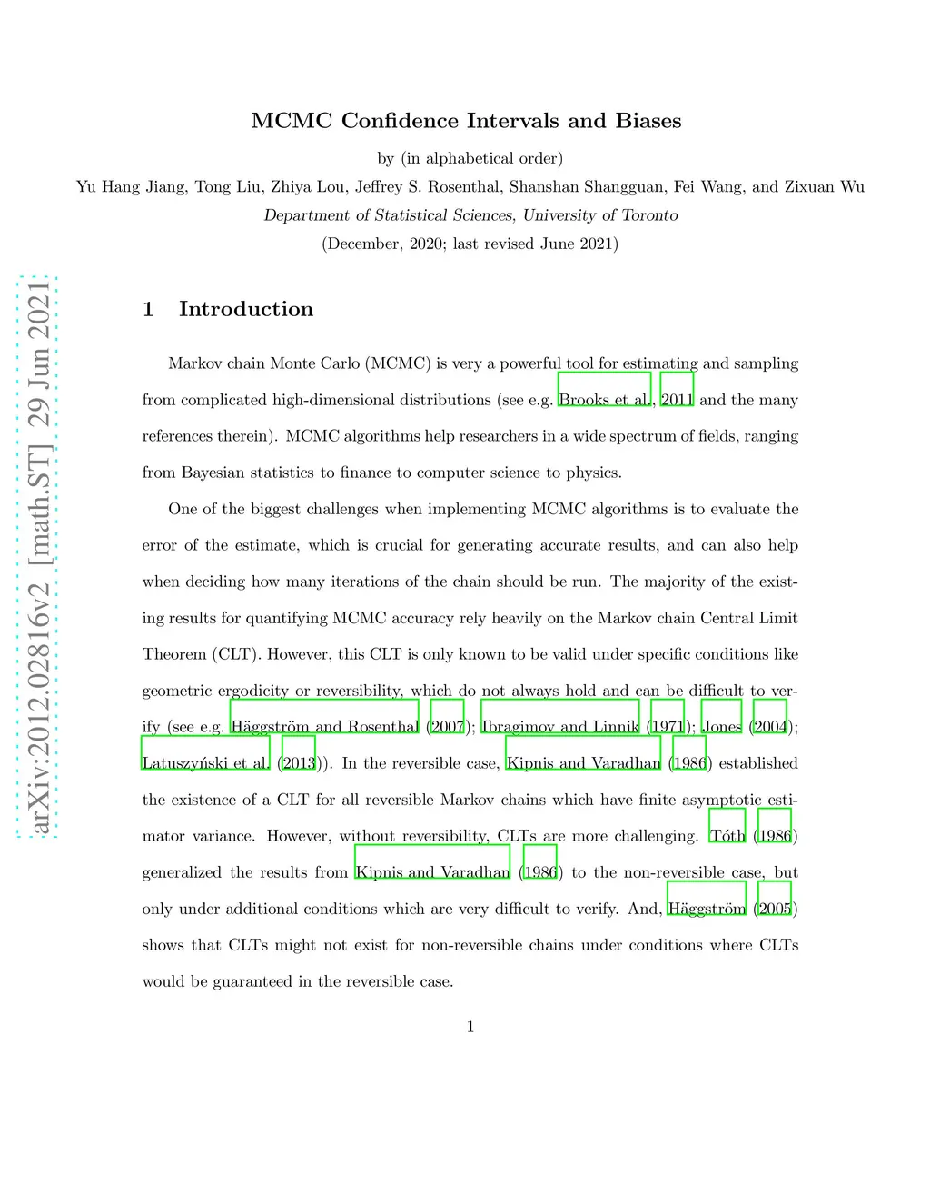 MCMC Confidence Intervals and Biases