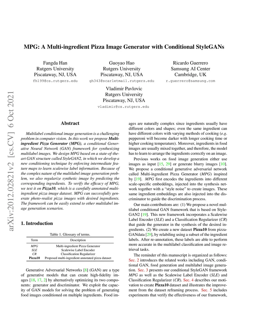 MPG: A Multi-ingredient Pizza Image Generator with Conditional StyleGANs