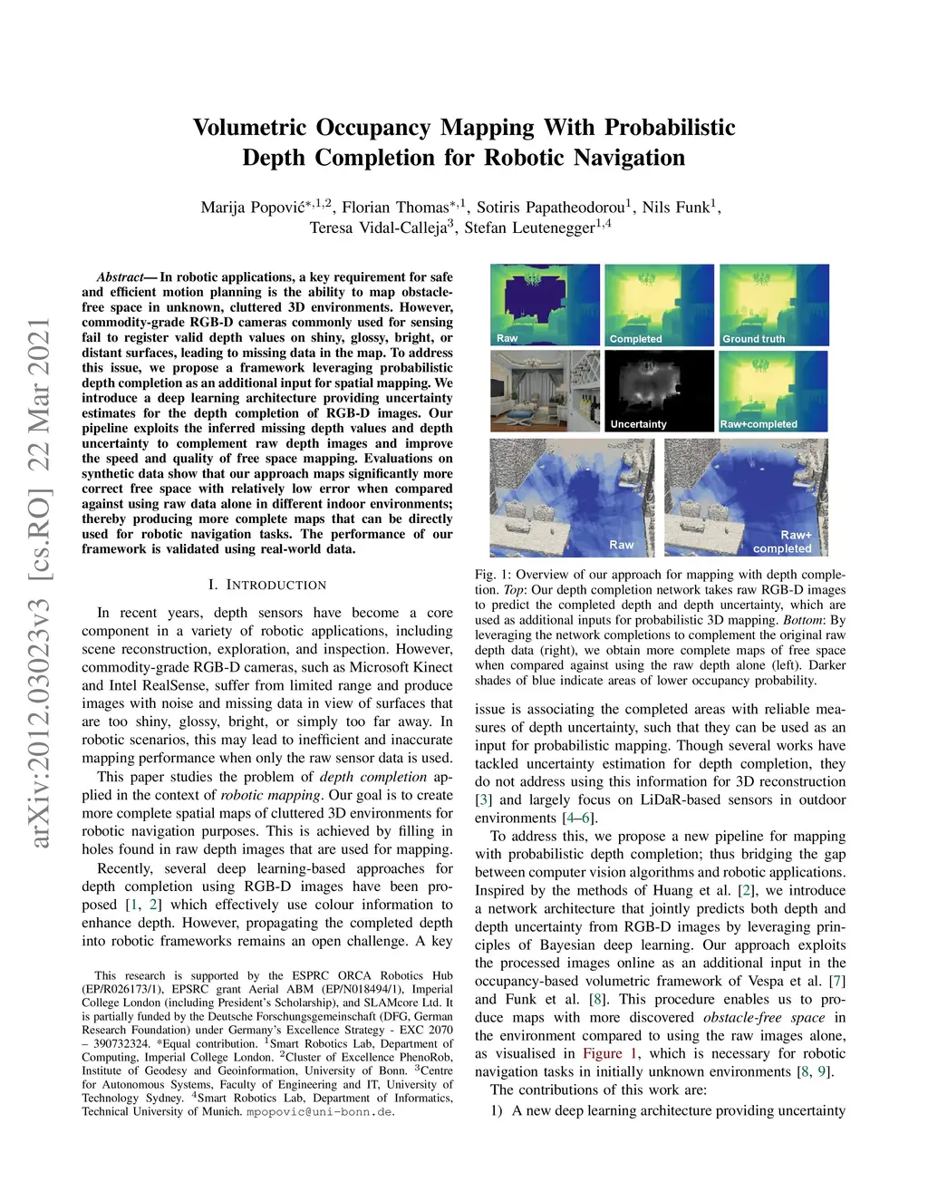 Volumetric Occupancy Mapping With Probabilistic Depth Completion for
