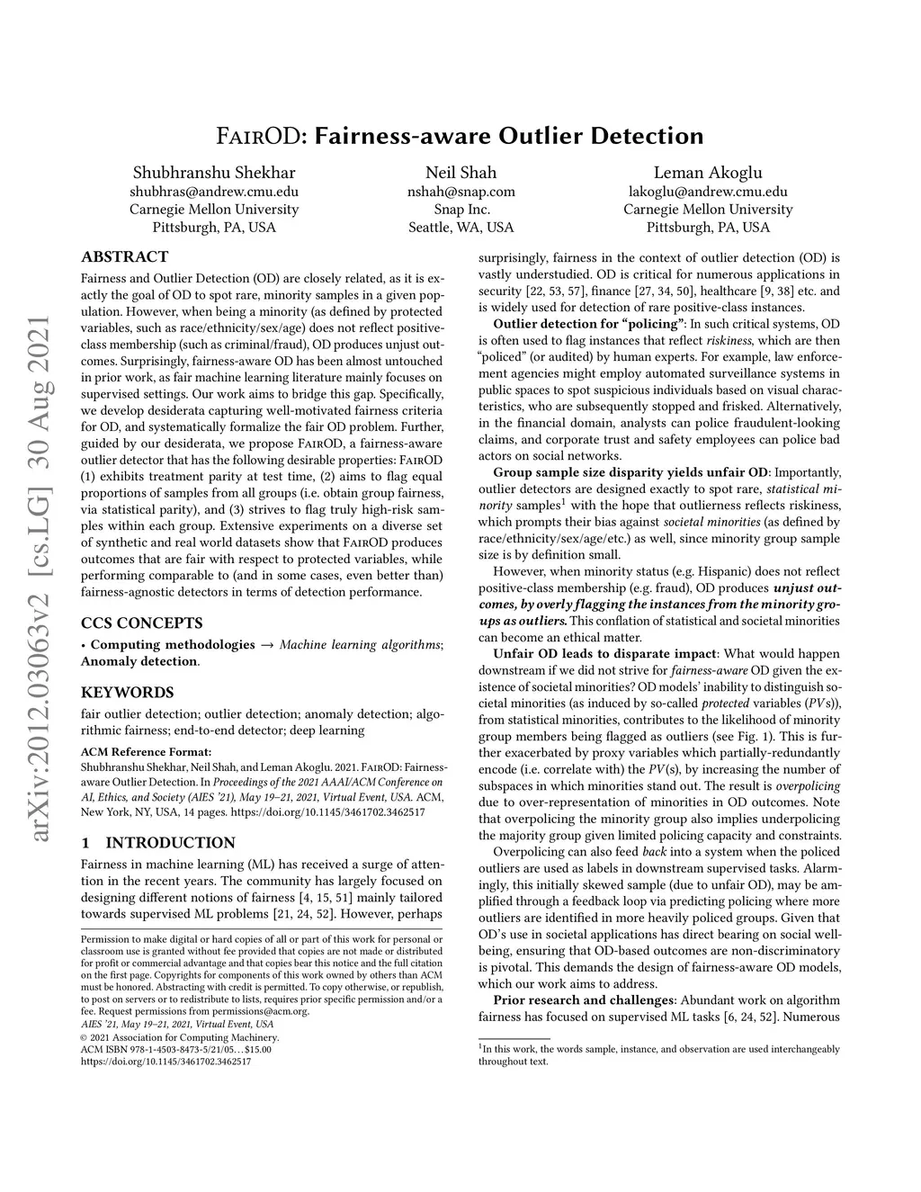 Fairness and Outlier Detection (OD) are closely related, as it is exactly the goal of OD to spot rare, minority samples in a given population. However, when being a minority (as defined by protected variables, such as race/ethnicity/sex/age) does not reflect positive-class membership (such as criminal/fraud), OD produces unjust outcomes. Surprisingly, fairness-aware OD has been almost untouched in prior work, as fair machine learning literature mainly focuses on supervised settings. Our work aims to bridge this gap. Specifically, we develop desiderata capturing well-motivated fairness criteria for OD, and systematically formalize the fair OD problem. Further, guided by our desiderata, we propose FairOD, a fairness-aware outlier detector that has the following desirable properties: FairOD (1) exhibits treatment parity at test time, (2) aims to flag equal proportions of samples from all groups (i.e. obtain group fairness, via statistical parity), and (3) strives to flag truly high-risk samples within each group. Extensive experiments on a diverse set of synthetic and real world datasets show that FairOD produces outcomes that are fair with respect to protected variables, while performing comparable to (and in some cases, even better than) fairness-agnostic detectors in terms of detection performance.