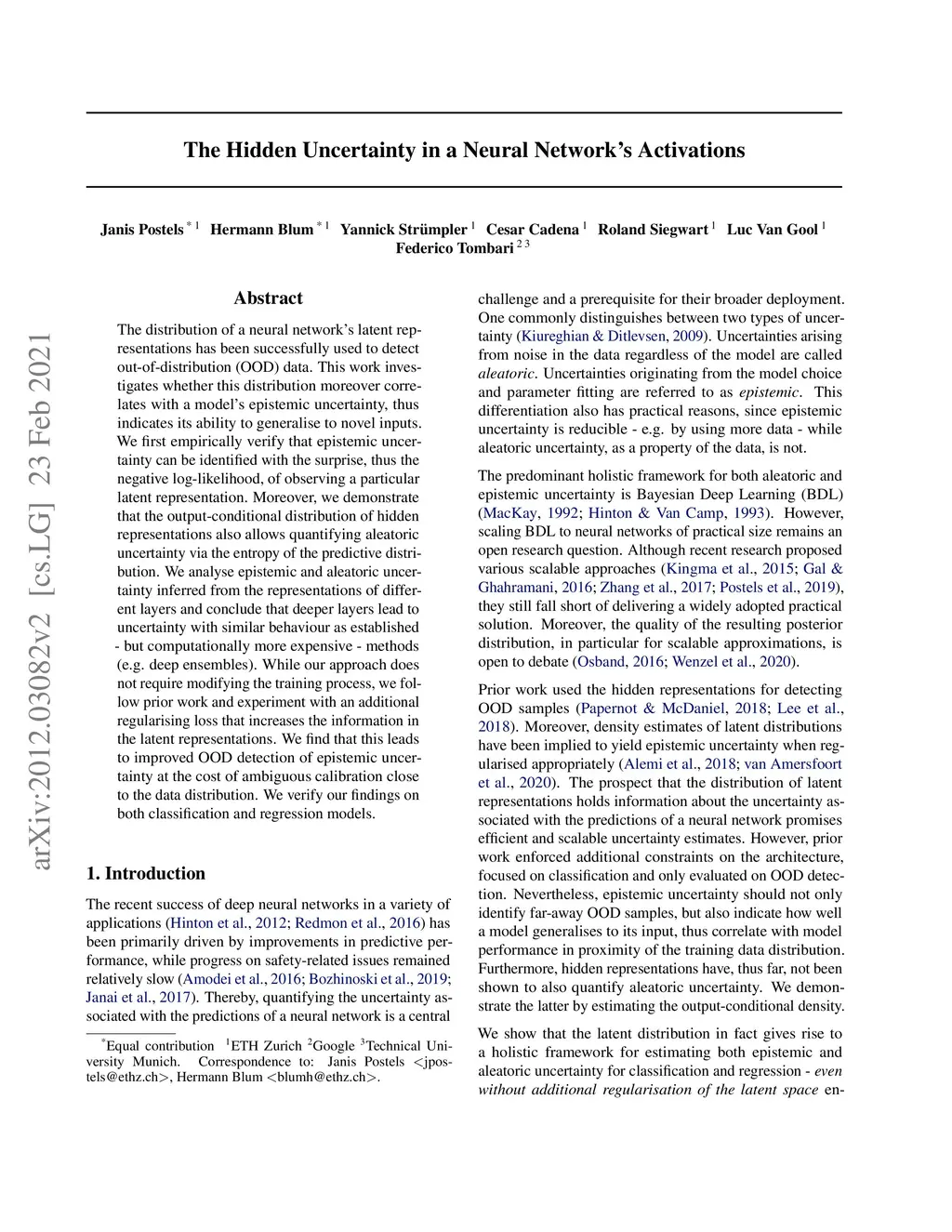The distribution of a neural network's latent representations has been successfully used to detect out-of-distribution (OOD) data. This work investigates whether this distribution moreover correlates with a model's epistemic uncertainty, thus indicates its ability to generalise to novel inputs. We first empirically verify that epistemic uncertainty can be identified with the surprise, thus the negative log-likelihood, of observing a particular latent representation. Moreover, we demonstrate that the output-conditional distribution of hidden representations also allows quantifying aleatoric uncertainty via the entropy of the predictive distribution. We analyse epistemic and aleatoric uncertainty inferred from the representations of different layers and conclude that deeper layers lead to uncertainty with similar behaviour as established - but computationally more expensive - methods (e.g. deep ensembles). While our approach does not require modifying the training process, we follow prior work and experiment with an additional regularising loss that increases the information in the latent representations. We find that this leads to improved OOD detection of epistemic uncertainty at the cost of ambiguous calibration close to the data distribution. We verify our findings on both classification and regression models.