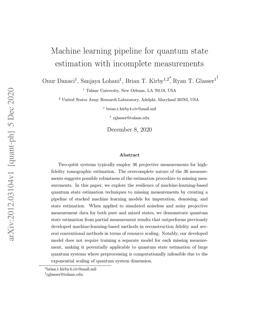 Two-qubit systems typically employ 36 projective measurements for high-fidelity tomographic estimation. The overcomplete nature of the 36 measurements suggests possible robustness of the estimation procedure to missing measurements. In this paper, we explore the resilience of machine-learning-based quantum state estimation techniques to missing measurements by creating a pipeline of stacked machine learning models for imputation, denoising, and state estimation. When applied to simulated noiseless and noisy projective measurement data for both pure and mixed states, we demonstrate quantum state estimation from partial measurement results that outperforms previously developed machine-learning-based methods in reconstruction fidelity and several conventional methods in terms of resource scaling. Notably, our developed model does not require training a separate model for each missing measurement, making it potentially applicable to quantum state estimation of large quantum systems where preprocessing is computationally infeasible due to the exponential scaling of quantum system dimension.