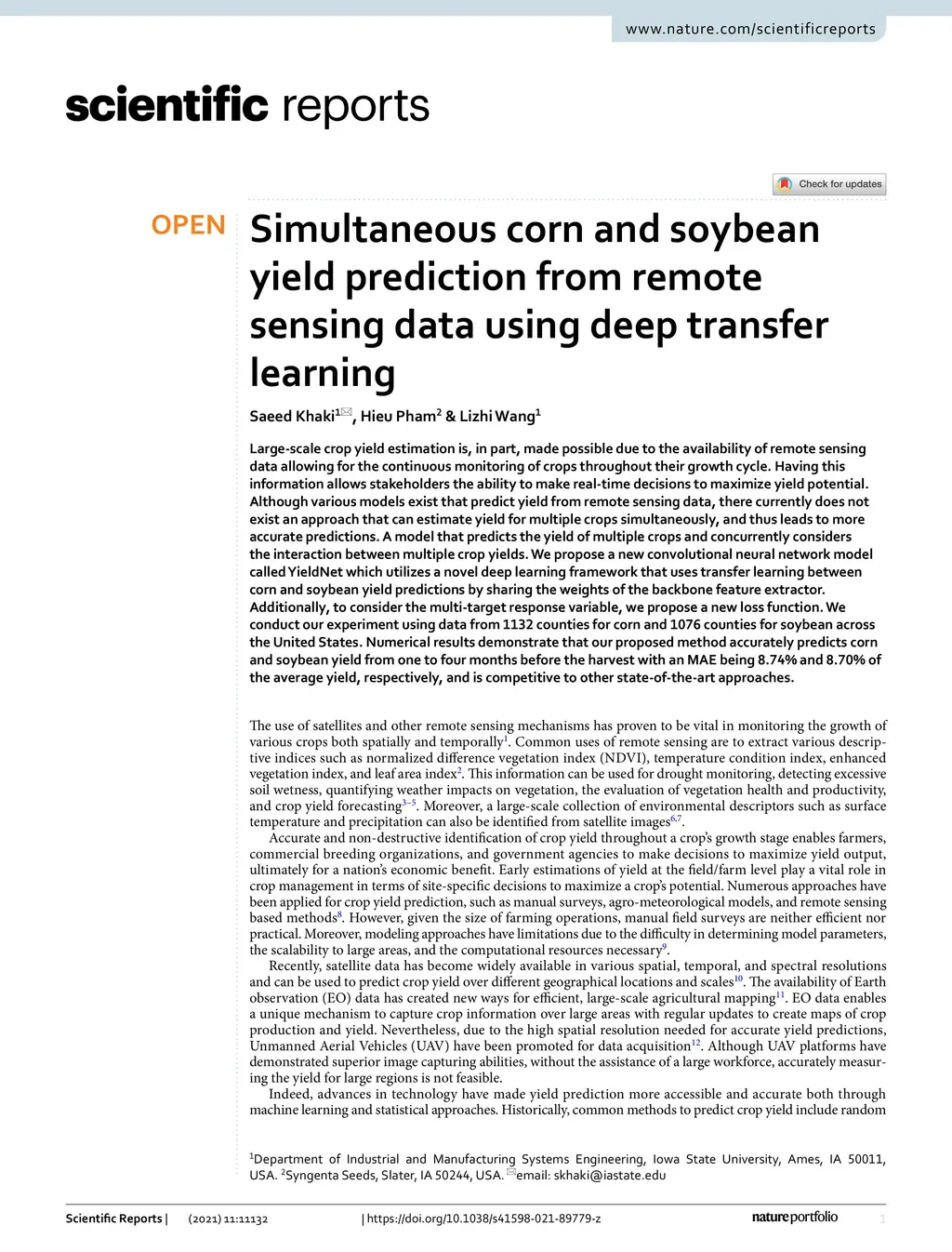 Simultaneous Corn and Soybean Yield Prediction from Remote Sensing Data