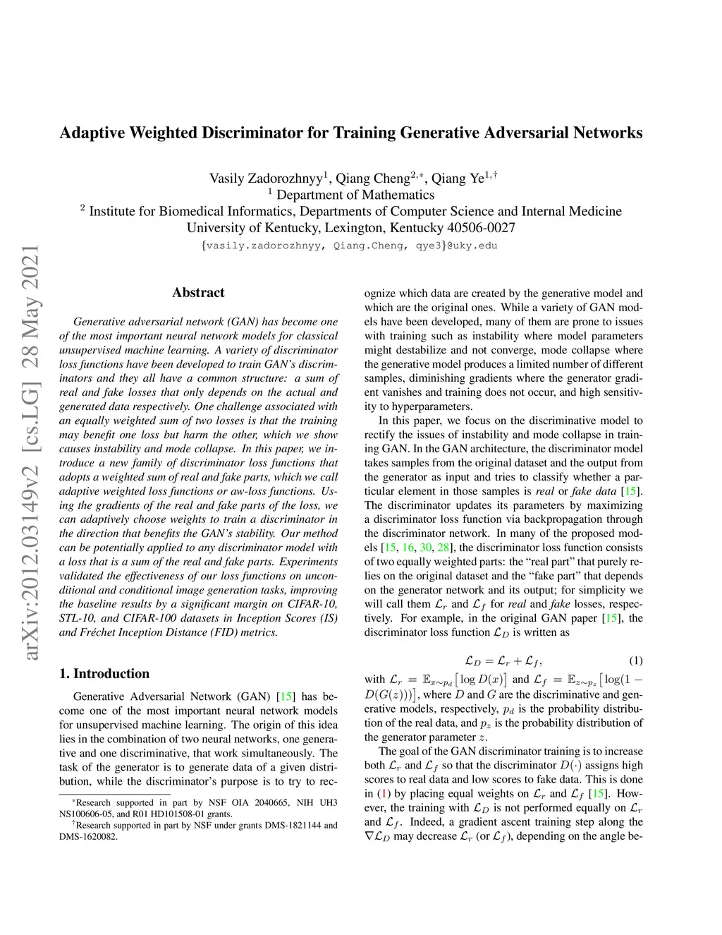 Adaptive Weighted Discriminator for Training Generative Adversarial