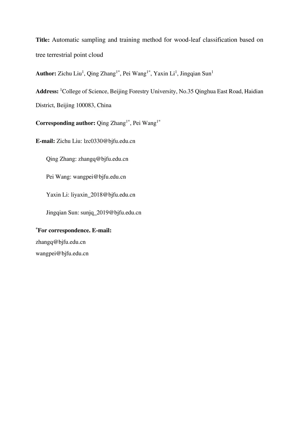 Automatic sampling and training method for wood-leaf classification