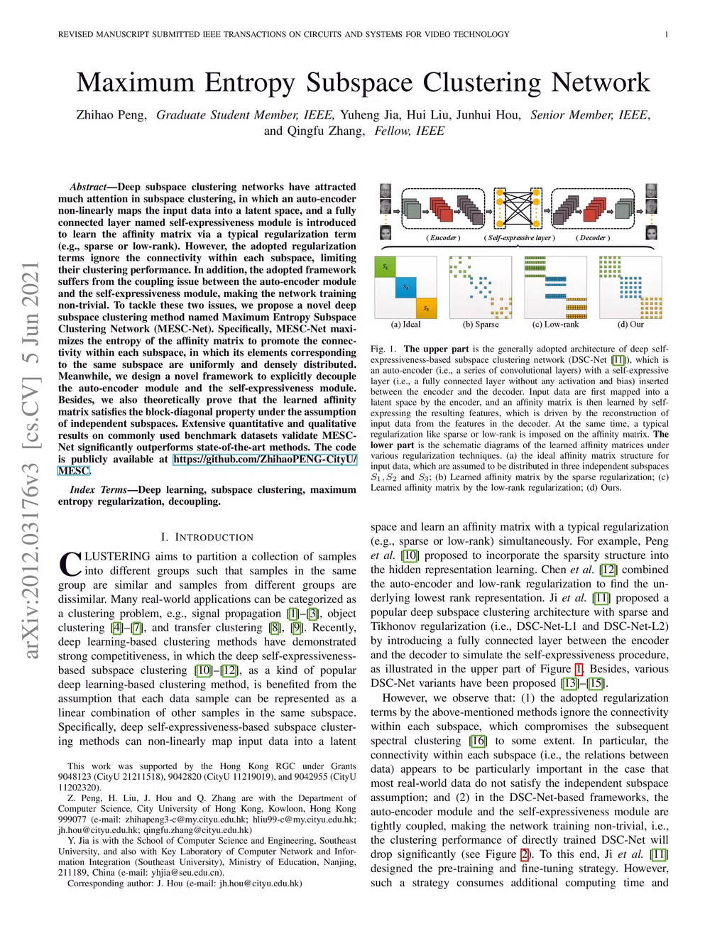 Deep subspace clustering networks have attracted much attention in subspace clustering, in which an auto-encoder non-linearly maps the input data into a latent space, and a fully connected layer named self-expressiveness module is introduced to learn the affinity matrix via a typical regularization term (e.g., sparse or low-rank). However, the adopted regularization terms ignore the connectivity within each subspace, limiting their clustering performance. In addition, the adopted framework suffers from the coupling issue between the auto-encoder module and the self-expressiveness module, making the network training non-trivial. To tackle these two issues, we propose a novel deep subspace clustering method named Maximum Entropy Subspace Clustering Network (MESC-Net). Specifically, MESC-Net maximizes the entropy of the affinity matrix to promote the connectivity within each subspace, in which its elements corresponding to the same subspace are uniformly and densely distributed. Furthermore, we design a novel framework to explicitly decouple the auto-encoder module and the self-expressiveness module. We also theoretically prove that the learned affinity matrix satisfies the block-diagonal property under the independent subspaces. Extensive quantitative and qualitative results on commonly used benchmark datasets validate MESC-Net significantly outperforms state-of-the-art methods.