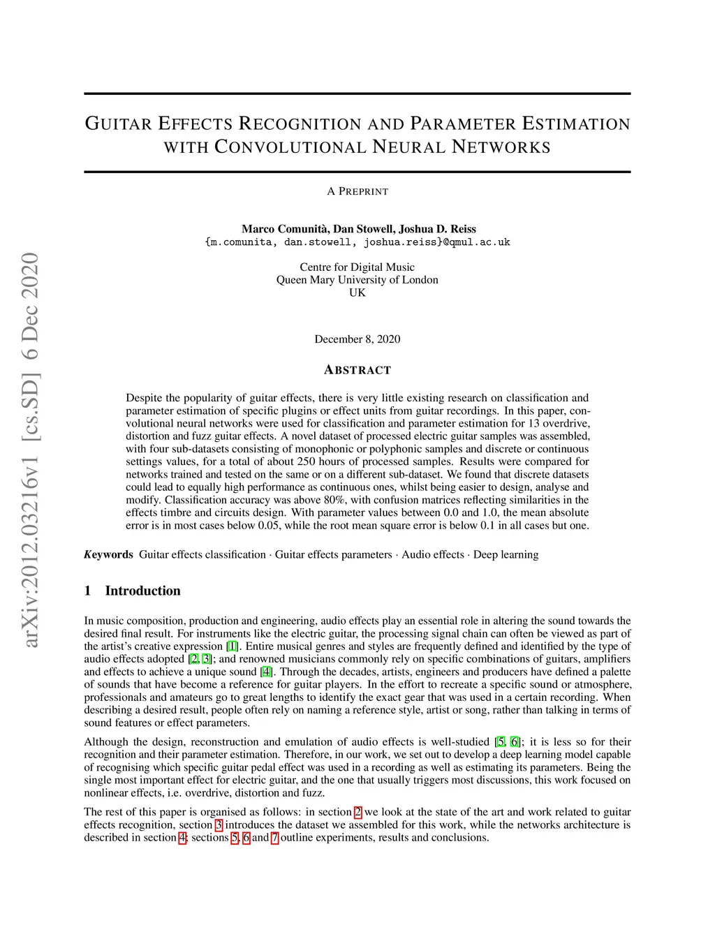 Guitar Effects Recognition and Parameter Estimation with Convolutional