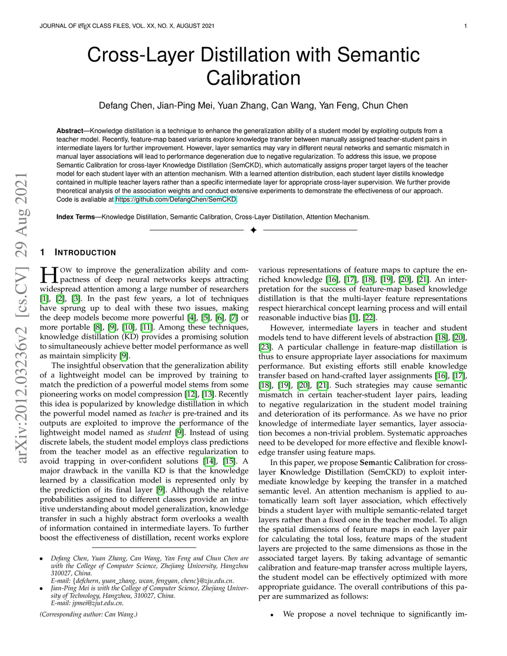 Cross-Layer Distillation with Semantic Calibration