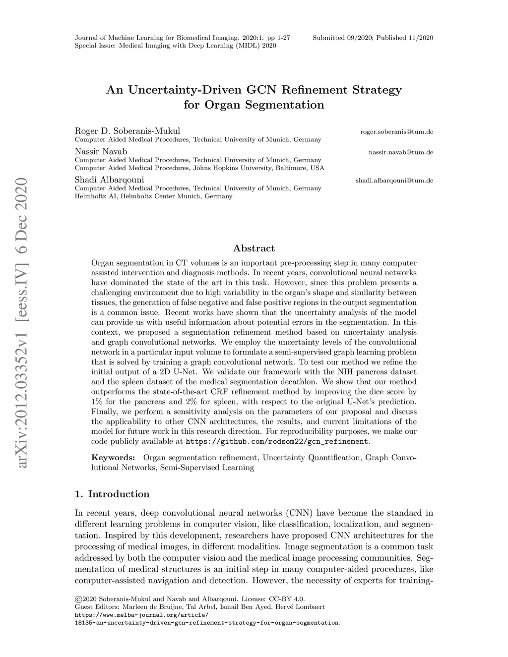 An Uncertainty-Driven GCN Refinement Strategy for Organ Segmentation