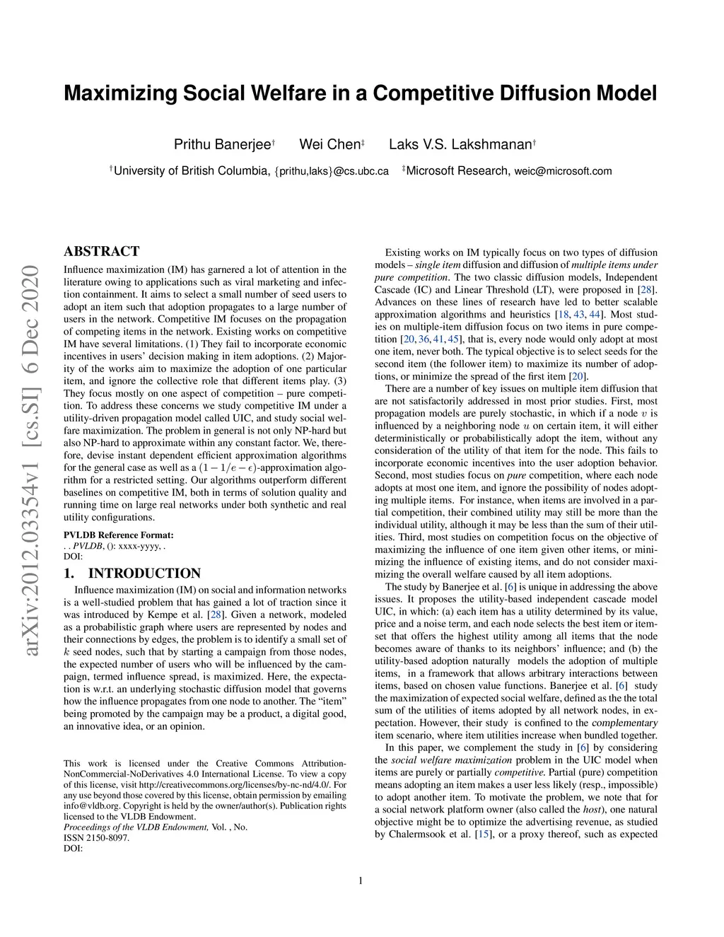 Maximizing Social Welfare in a Competitive Diffusion Model