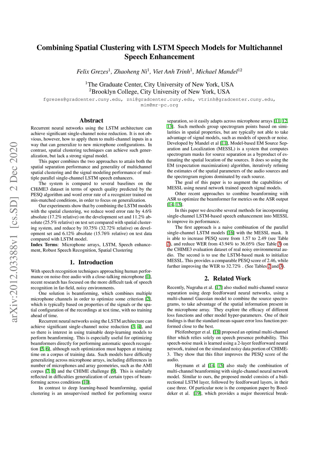 Combining Spatial Clustering with LSTM Speech Models for Multichannel