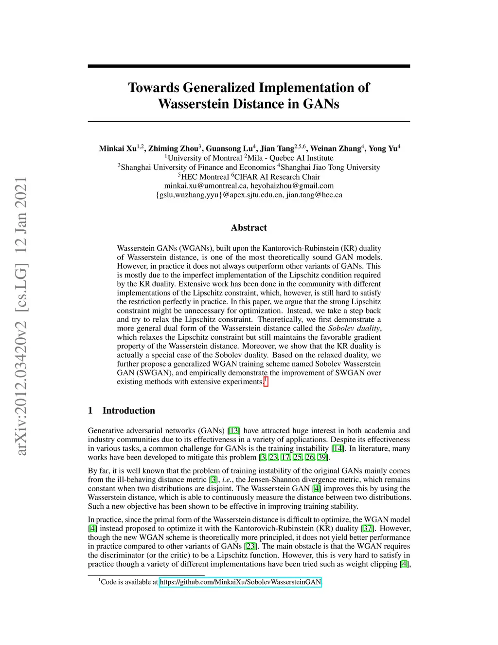 Towards Generalized Implementation of Wasserstein Distance in GANs