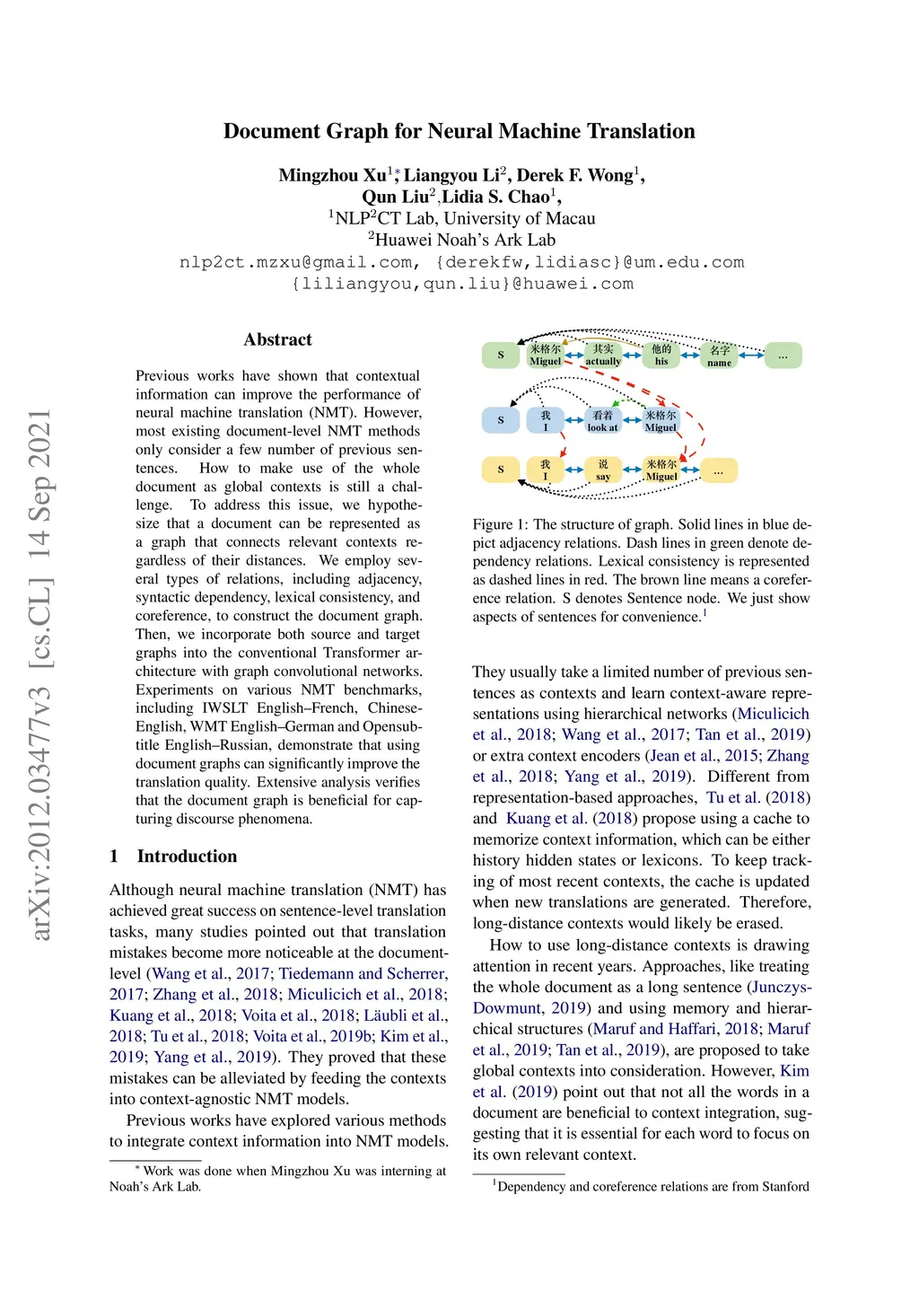 Document Graph for Neural Machine Translation