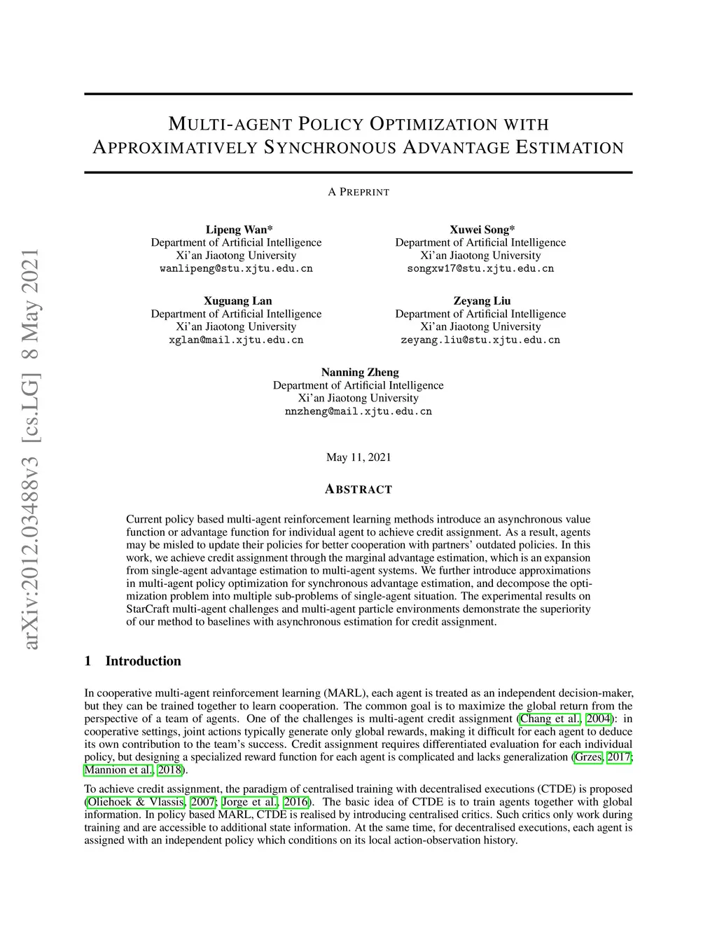 Multi-agent Policy Optimization with Approximatively Synchronous Advantage Estimation