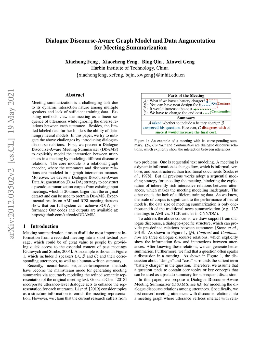 Dialogue Discourse-Aware Graph Model and Data Augmentation for Meeting