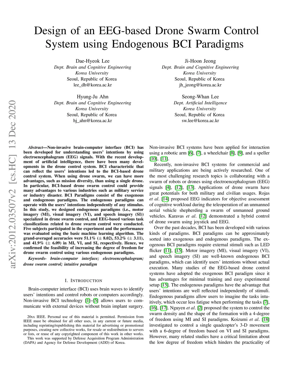 Design of an EEG-based Drone Swarm Control System using Endogenous BCI