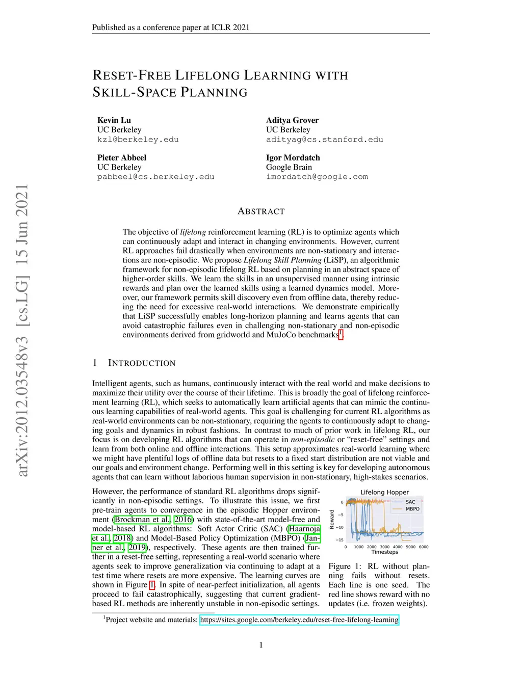 Reset-Free Lifelong Learning with Skill-Space Planning