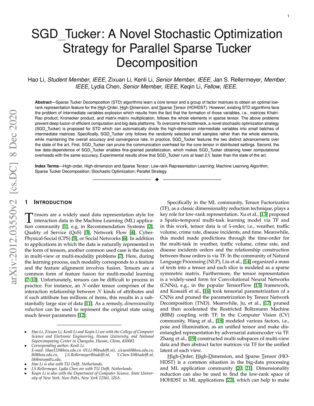 SGD_Tucker: A Novel Stochastic Optimization Strategy for Parallel Sparse