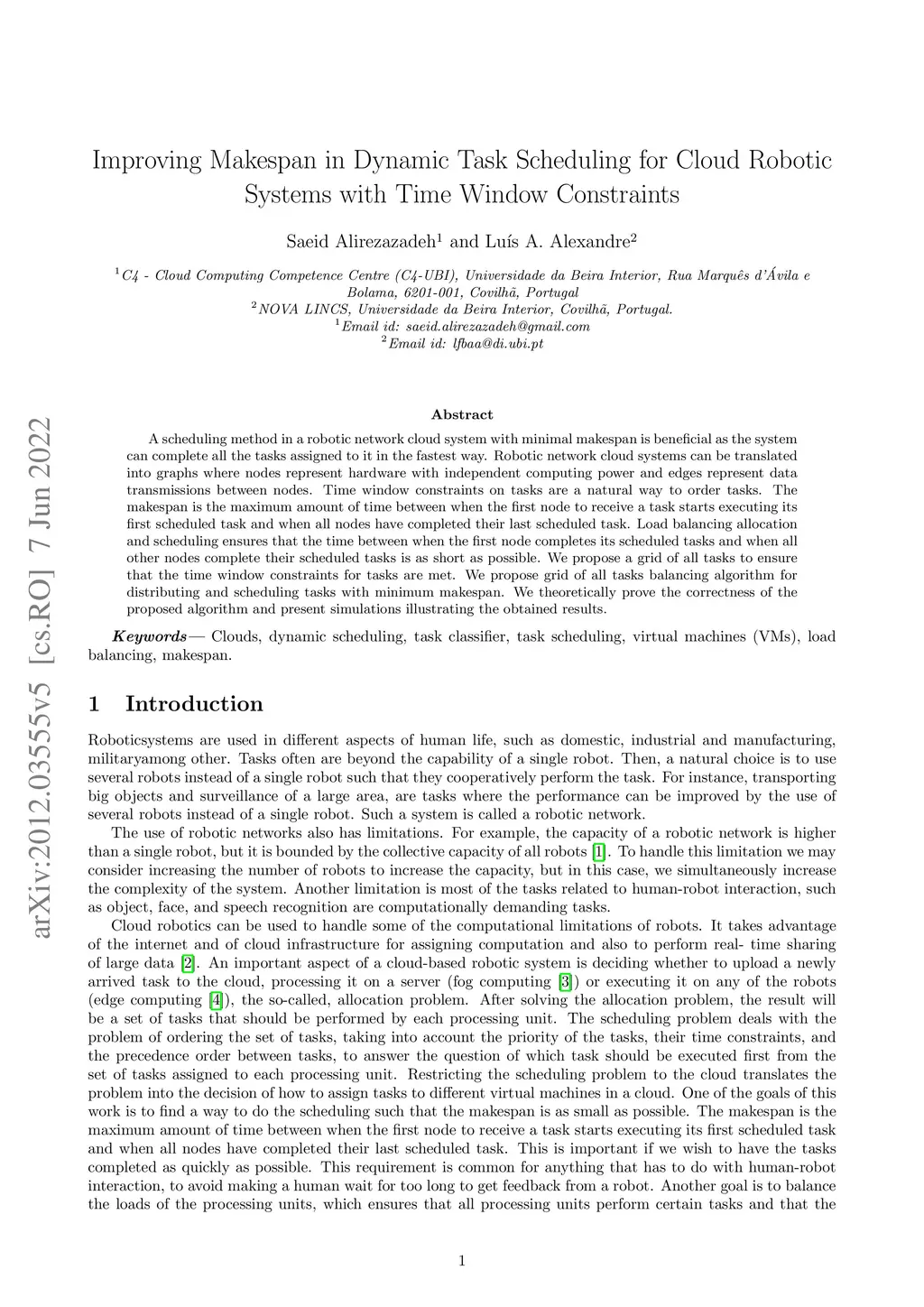 Improving Makespan in Dynamic Task Scheduling for Cloud Robotic Systems