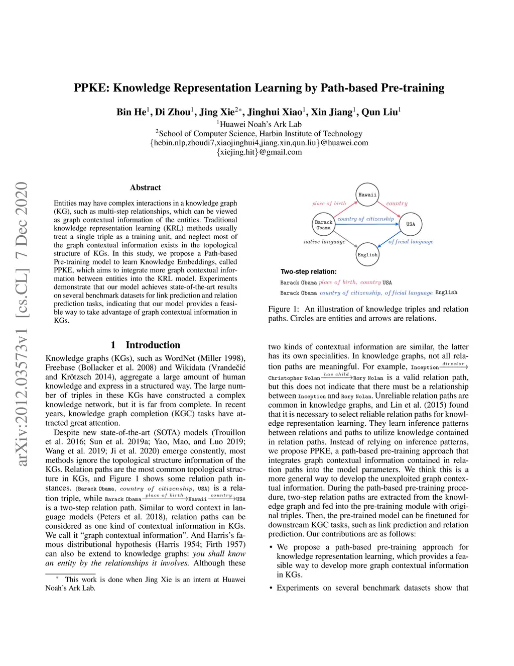 PPKE: Knowledge Representation Learning by Path-based Pre-training