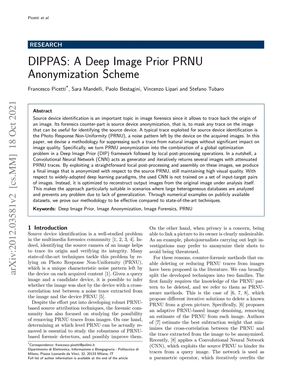 DIPPAS: A Deep Image Prior PRNU Anonymization Scheme