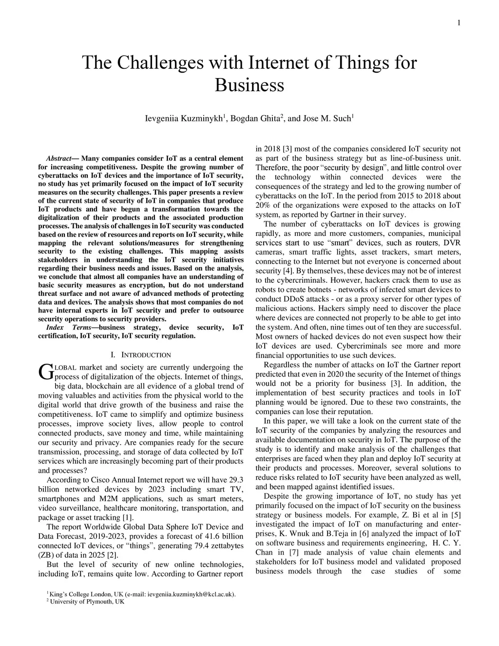 Many companies consider IoT as a central element for increasing competitiveness. Despite the growing number of cyberattacks on IoT devices and the importance of IoT security, no study has yet primarily focused on the impact of IoT security measures on the security challenges. This paper presents a review of the current state of security of IoT in companies that produce IoT products and have begun a transformation towards the digitalization of their products and the associated production processes. The analysis of challenges in IoT security was conducted based on the review of resources and reports on IoT security, while mapping the relevant solutions/measures for strengthening security to the existing challenges. This mapping assists stakeholders in understanding the IoT security initiatives regarding their business needs and issues. Based on the analysis, we conclude that almost all companies have an understanding of basic security measures as encryption, but do not understand threat surface and not aware of advanced methods of protecting data and devices. The analysis shows that most companies do not have internal experts in IoT security and prefer to outsource security operations to security providers.