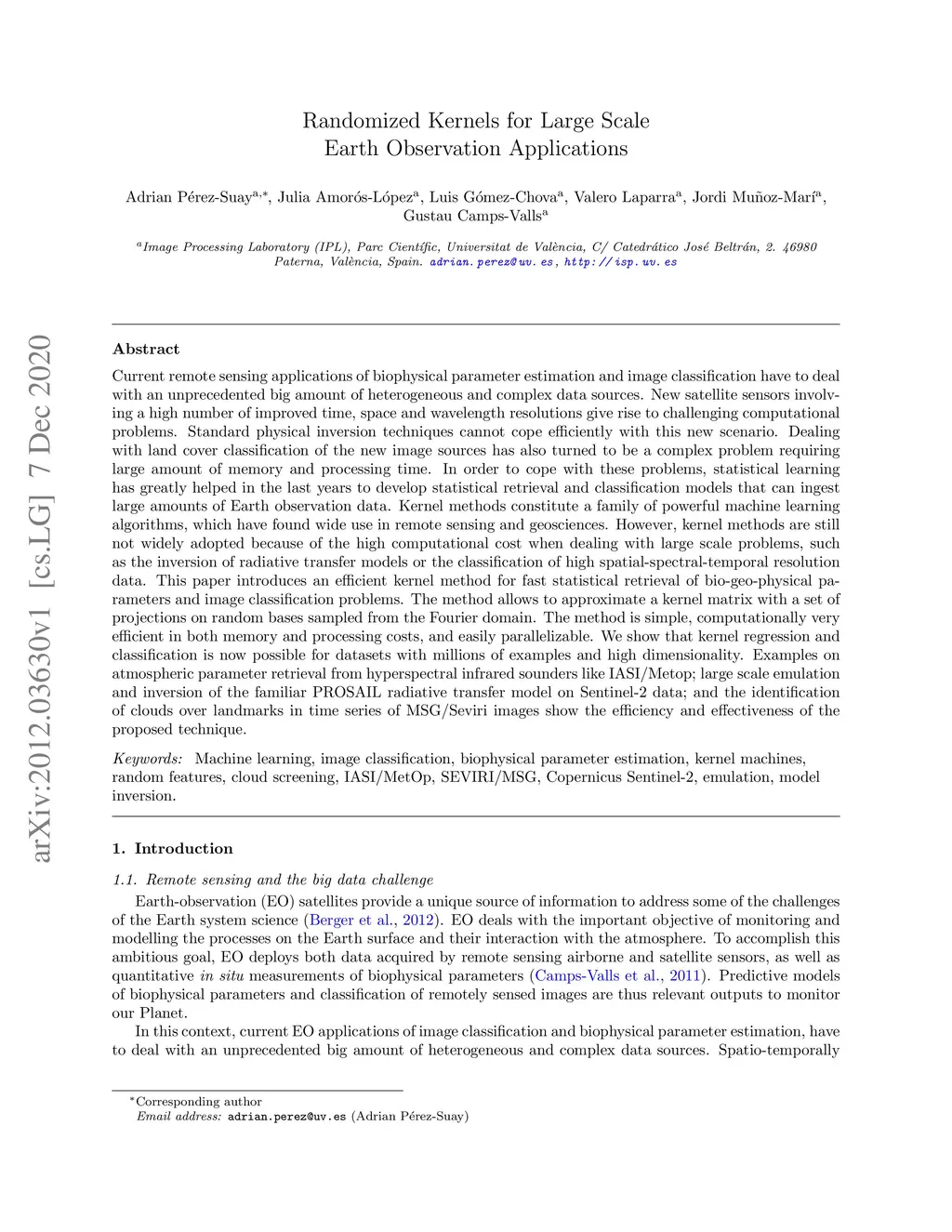 Randomized kernels for large scale Earth observation applications