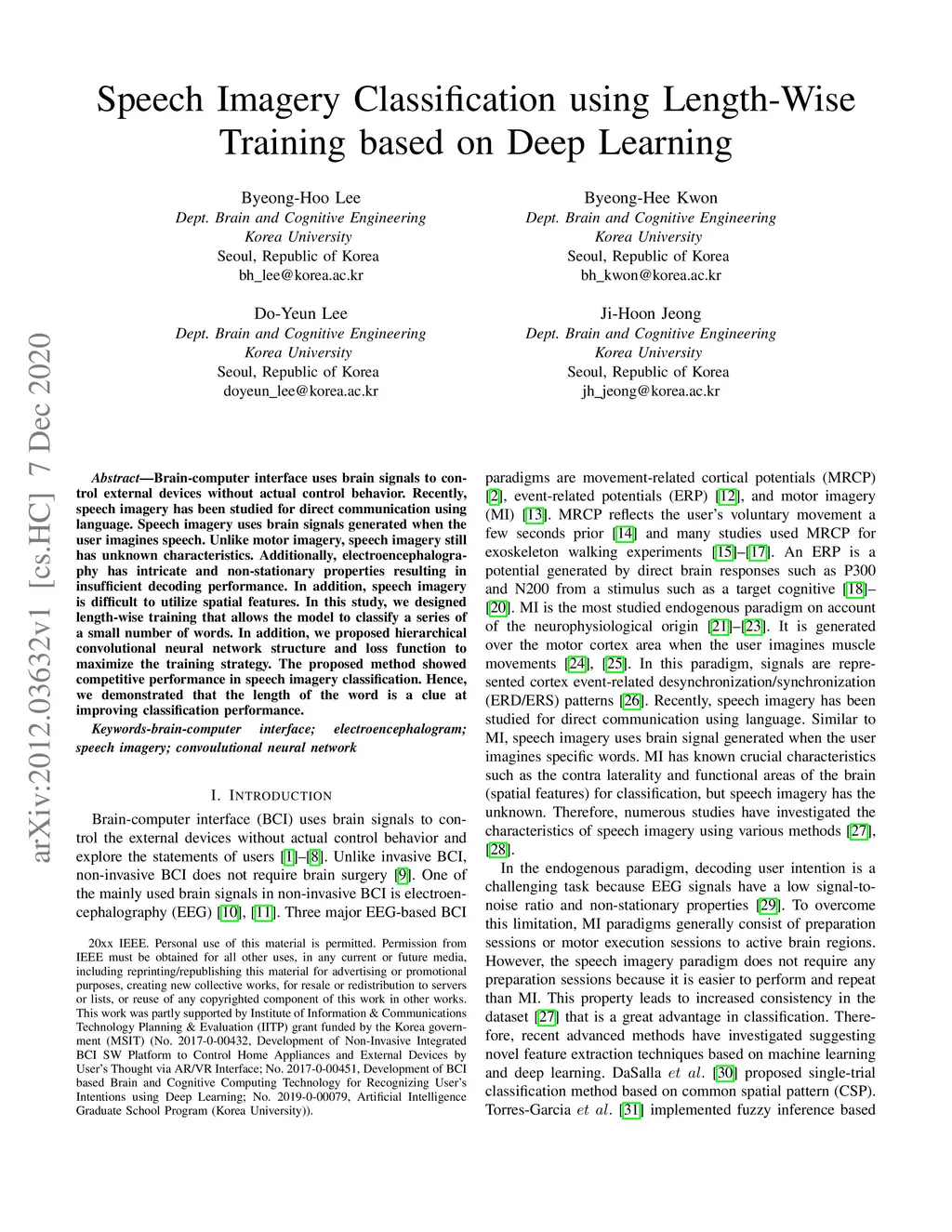 Speech Imagery Classification using Length-Wise Training based on Deep