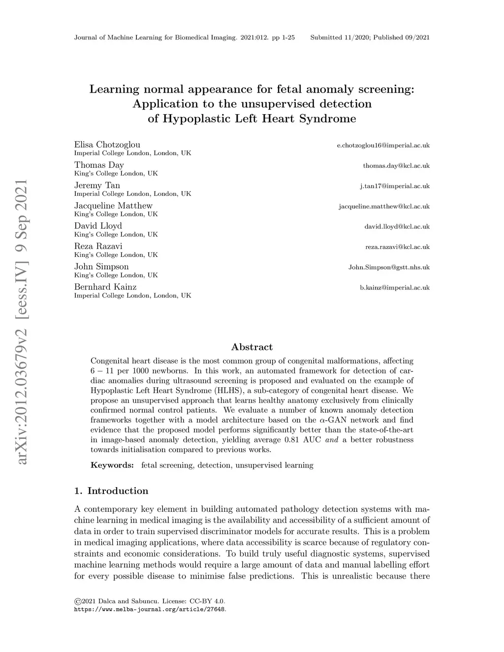 the unsupervised detection of Hypoplastic Left Heart Syndrome