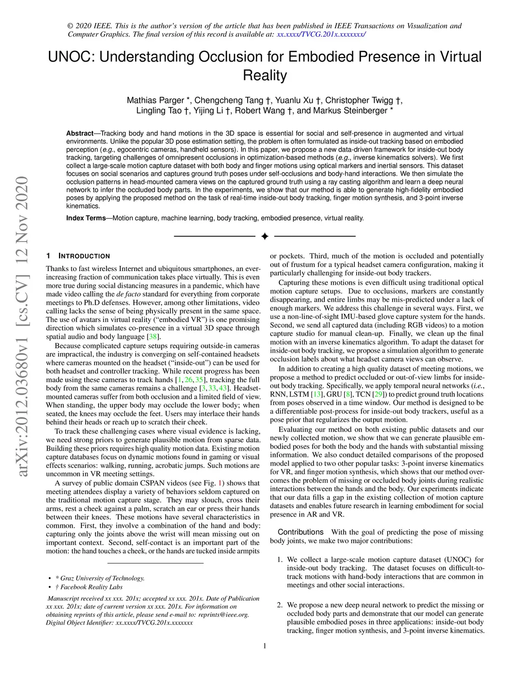 UNOC: Understanding Occlusion for Embodied Presence in Virtual Reality