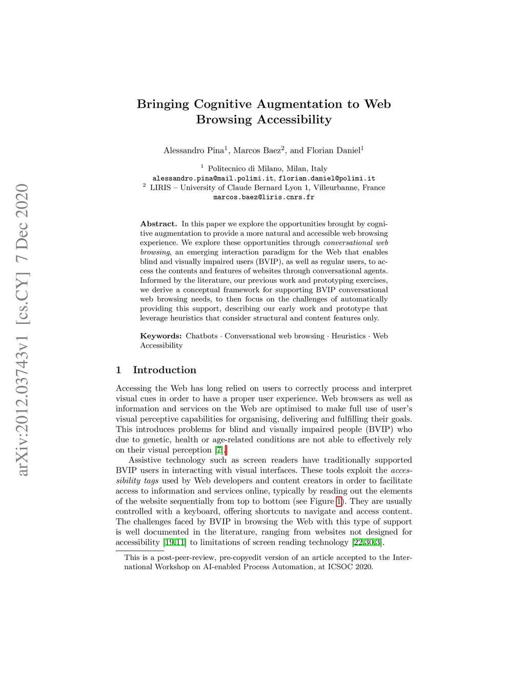Bringing Cognitive Augmentation to Web Browsing Accessibility