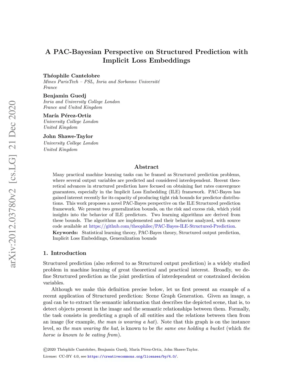 A PAC-Bayesian Perspective on Structured Prediction with Implicit Loss