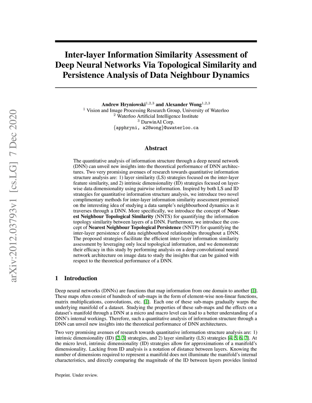 The quantitative analysis of information structure through a deep neural network (DNN) can unveil new insights into the theoretical performance of DNN architectures. Two very promising avenues of research towards quantitative information structure analysis are: 1) layer similarity (LS) strategies focused on the inter-layer feature similarity, and 2) intrinsic dimensionality (ID) strategies focused on layer-wise data dimensionality using pairwise information. Inspired by both LS and ID strategies for quantitative information structure analysis, we introduce two novel complimentary methods for inter-layer information similarity assessment premised on the interesting idea of studying a data sample's neighbourhood dynamics as it traverses through a DNN. More specifically, we introduce the concept of Nearest Neighbour Topological Similarity (NNTS) for quantifying the information topology similarity between layers of a DNN. Furthermore, we introduce the concept of Nearest Neighbour Topological Persistence (NNTP) for quantifying the inter-layer persistence of data neighbourhood relationships throughout a DNN. The proposed strategies facilitate the efficient inter-layer information similarity assessment by leveraging only local topological information, and we demonstrate their efficacy in this study by performing analysis on a deep convolutional neural network architecture on image data to study the insights that can be gained with respect to the theoretical performance of a DNN.