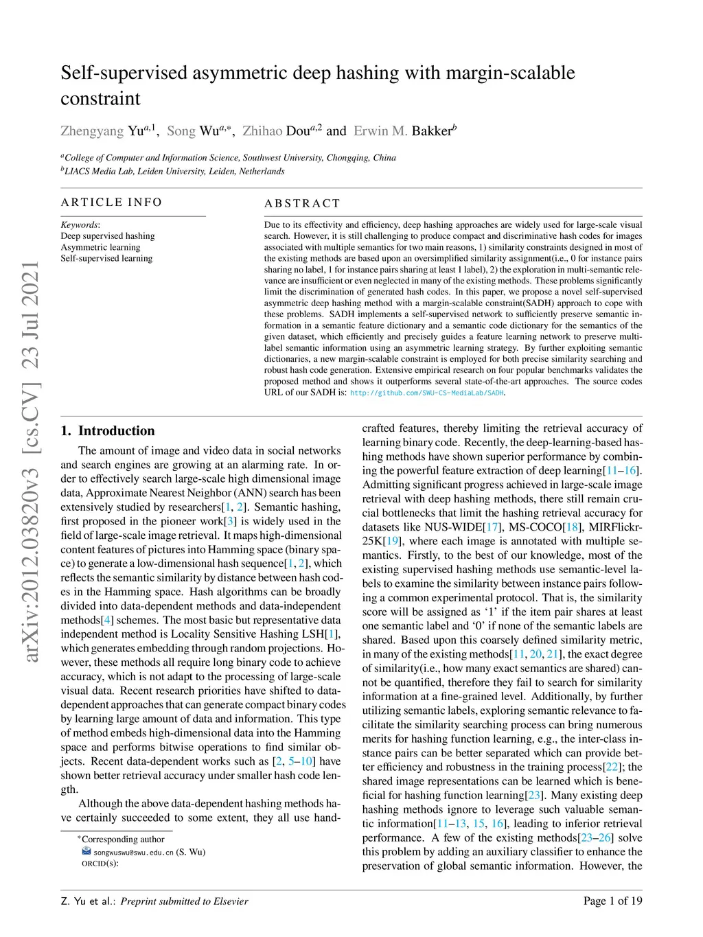 Self-supervised asymmetric deep hashing with margin-scalable constraint