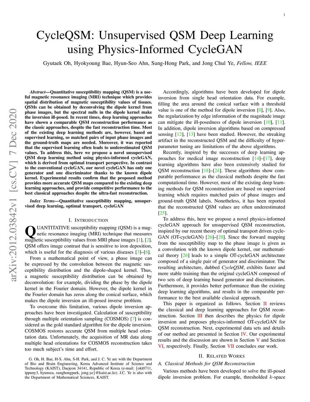 CycleQSM: Unsupervised QSM Deep Learning using Physics-Informed CycleGAN