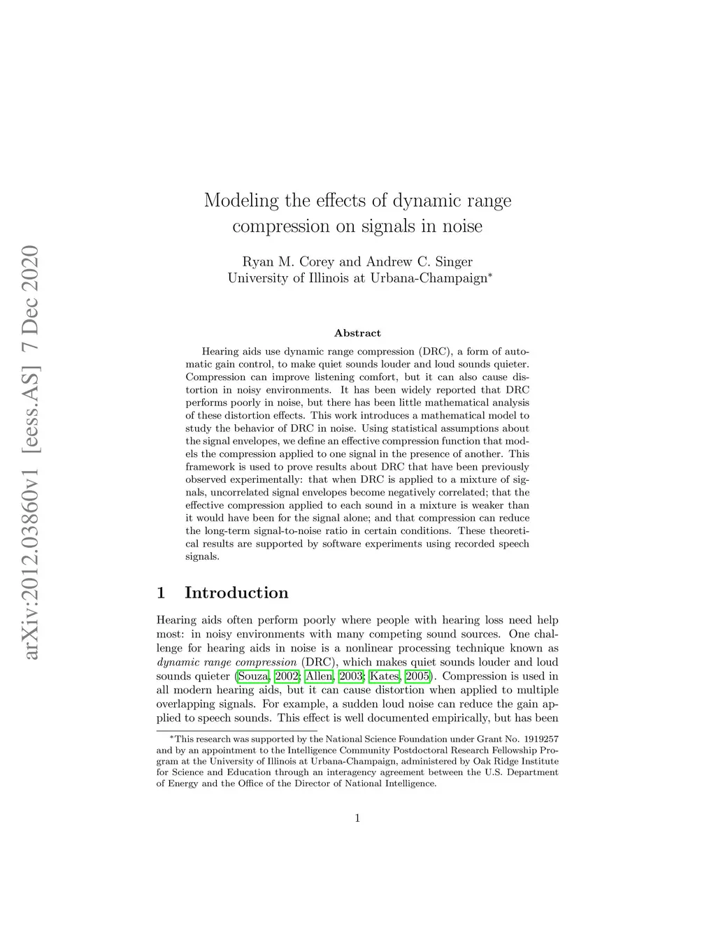 Hearing aids use dynamic range compression (DRC), a form of automatic gain control, to make quiet sounds louder and loud sounds quieter. Compression can improve listening comfort, but it can also cause distortion in noisy environments. It has been widely reported that DRC performs poorly in noise, but there has been little mathematical analysis of these distortion effects. This work introduces a mathematical model to study the behavior of DRC in noise. Using statistical assumptions about the signal envelopes, we define an effective compression function that models the compression applied to one signal in the presence of another. This framework is used to prove results about DRC that have been previously observed experimentally: that when DRC is applied to a mixture of signals, uncorrelated signal envelopes become negatively correlated; that the effective compression applied to each sound in a mixture is weaker than it would have been for the signal alone; and that compression can reduce the long-term signal-to-noise ratio in certain conditions. These theoretical results are supported by software experiments using recorded speech signals.