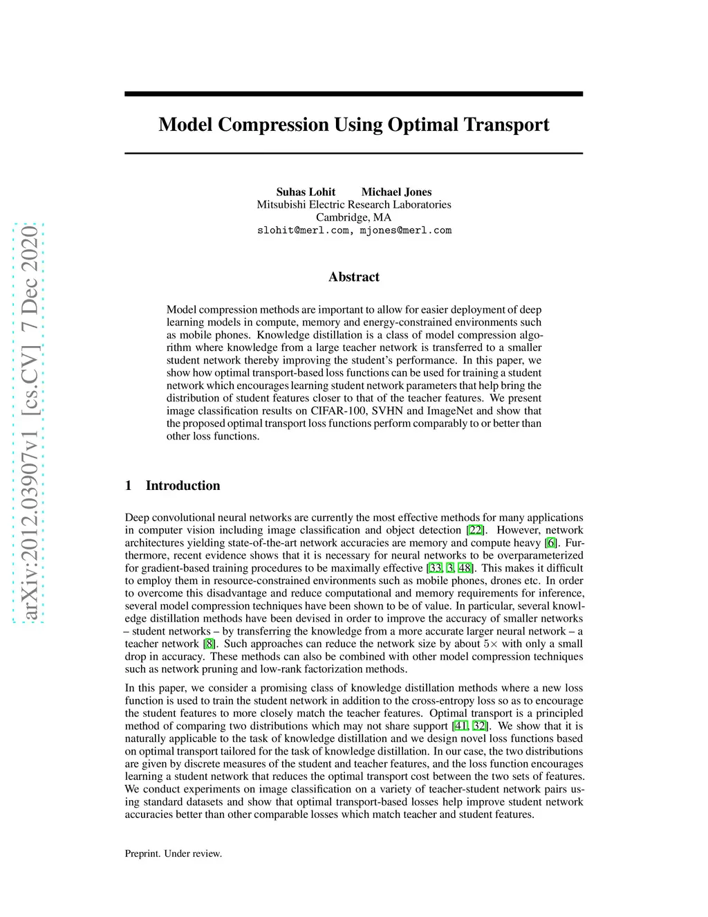 Model Compression Using Optimal Transport