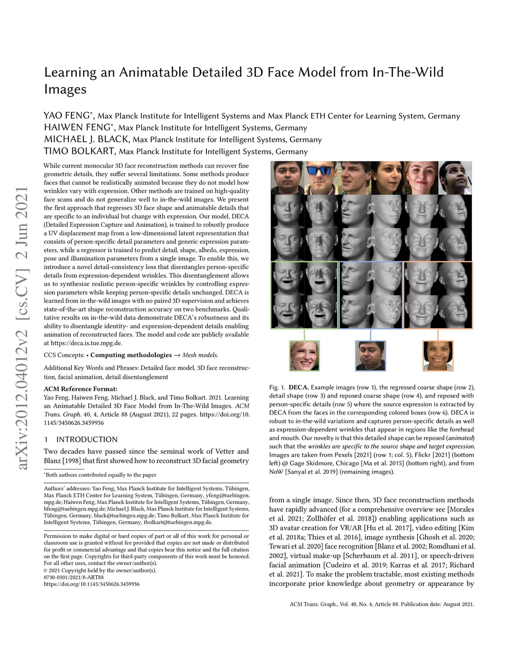 While current monocular 3D face reconstruction methods can recover fine geometric details, they suffer several limitations. Some methods produce faces that cannot be realistically animated because they do not model how wrinkles vary with expression. Other methods are trained on high-quality face scans and do not generalize well to in-the-wild images. We present the first approach to jointly learn a model with animatable detail and a detailed 3D face regressor from in-the-wild images that recovers shape details as well as their relationship to facial expressions. Our DECA (Detailed Expression Capture and Animation) model is trained to robustly produce a UV displacement map from a low-dimensional latent representation that consists of person-specific detail parameters and generic expression parameters, while a regressor is trained to predict detail, shape, albedo, expression, pose and illumination parameters from a single image. We introduce a novel detail-consistency loss to disentangle person-specific details and expression-dependent wrinkles. This disentanglement allows us to synthesize realistic person-specific wrinkles by controlling expression parameters while keeping person-specific details unchanged. DECA achieves state-of-the-art shape reconstruction accuracy on two benchmarks. Qualitative results on in-the-wild data demonstrate DECA's robustness and its ability to disentangle identity and expression dependent details enabling animation of reconstructed faces. The model and code are publicly available at https://github.com/YadiraF/DECA.