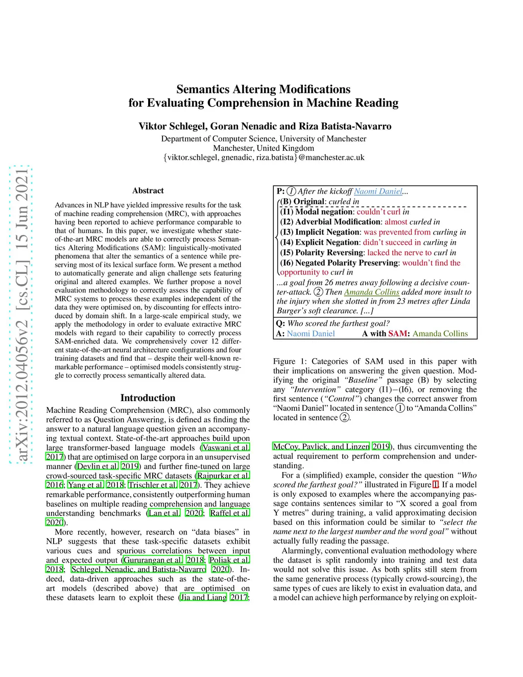 Semantics Altering Modifications for Evaluating Comprehension in Machine