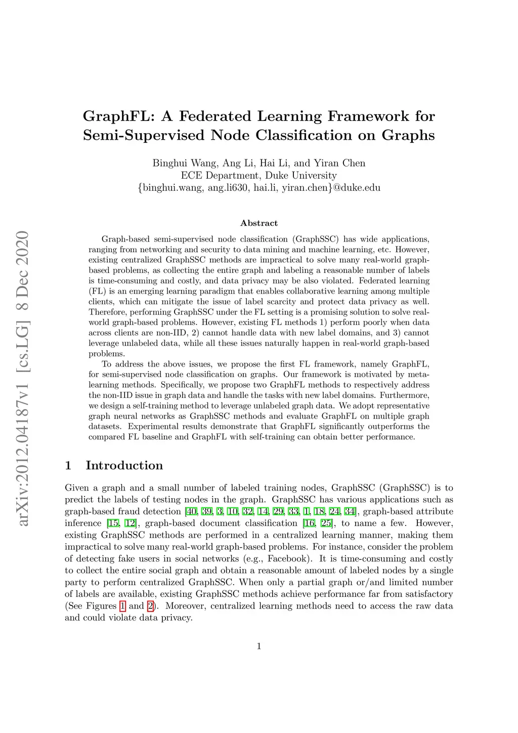 GraphFL: A Federated Learning Framework for Semi-Supervised Node