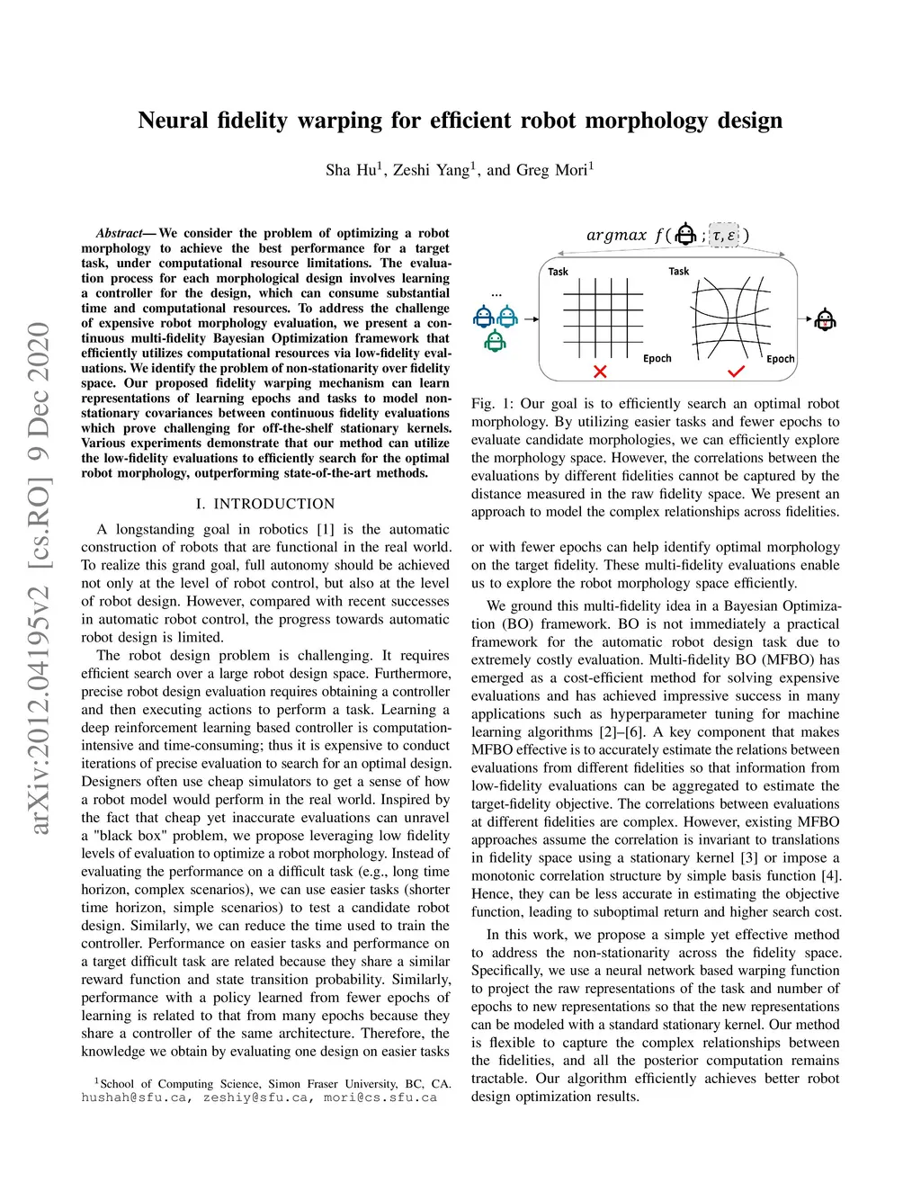 Neural fidelity warping for efficient robot morphology design