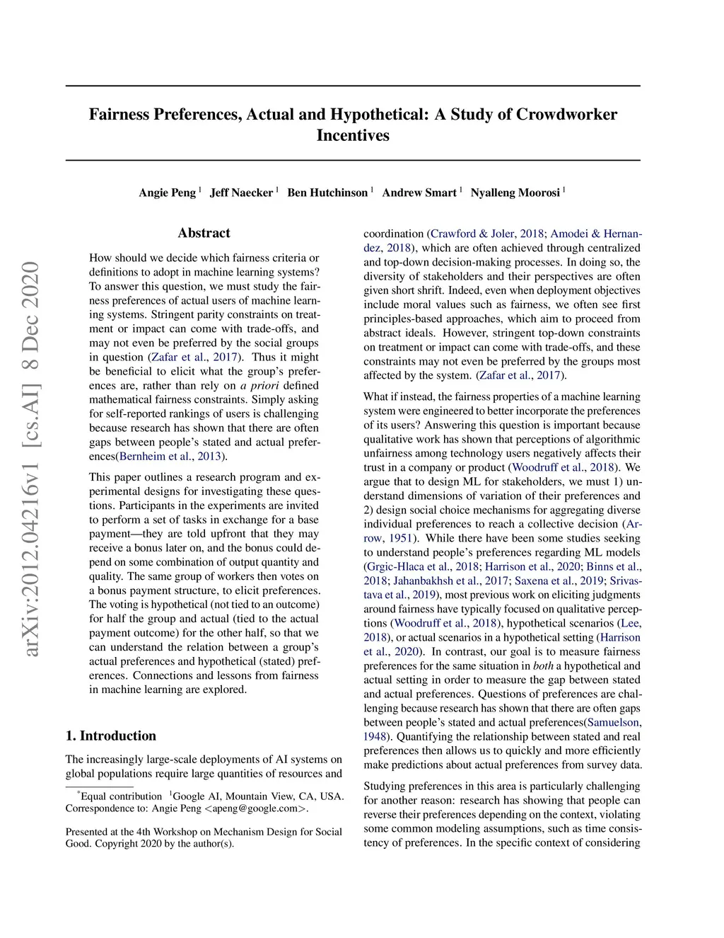 How should we decide which fairness criteria or definitions to adopt in machine learning systems? To answer this question, we must study the fairness preferences of actual users of machine learning systems. Stringent parity constraints on treatment or impact can come with trade-offs, and may not even be preferred by the social groups in question (Zafar et al., 2017). Thus it might be beneficial to elicit what the group's preferences are, rather than rely on a priori defined mathematical fairness constraints. Simply asking for self-reported rankings of users is challenging because research has shown that there are often gaps between people's stated and actual preferences(Bernheim et al., 2013). This paper outlines a research program and experimental designs for investigating these questions. Participants in the experiments are invited to perform a set of tasks in exchange for a base payment--they are told upfront that they may receive a bonus later on, and the bonus could depend on some combination of output quantity and quality. The same group of workers then votes on a bonus payment structure, to elicit preferences. The voting is hypothetical (not tied to an outcome) for half the group and actual (tied to the actual payment outcome) for the other half, so that we can understand the relation between a group's actual preferences and hypothetical (stated) preferences. Connections and lessons from fairness in machine learning are explored.