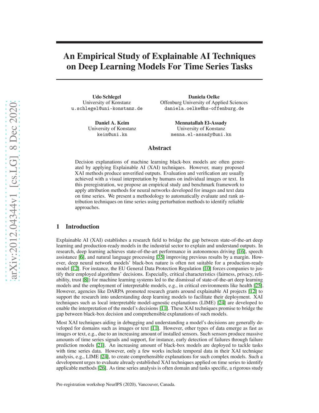Decision explanations of machine learning black-box models are often generated by applying Explainable AI (XAI) techniques. However, many proposed XAI methods produce unverified outputs. Evaluation and verification are usually achieved with a visual interpretation by humans on individual images or text. In this preregistration, we propose an empirical study and benchmark framework to apply attribution methods for neural networks developed for images and text data on time series. We present a methodology to automatically evaluate and rank attribution techniques on time series using perturbation methods to identify reliable approaches.