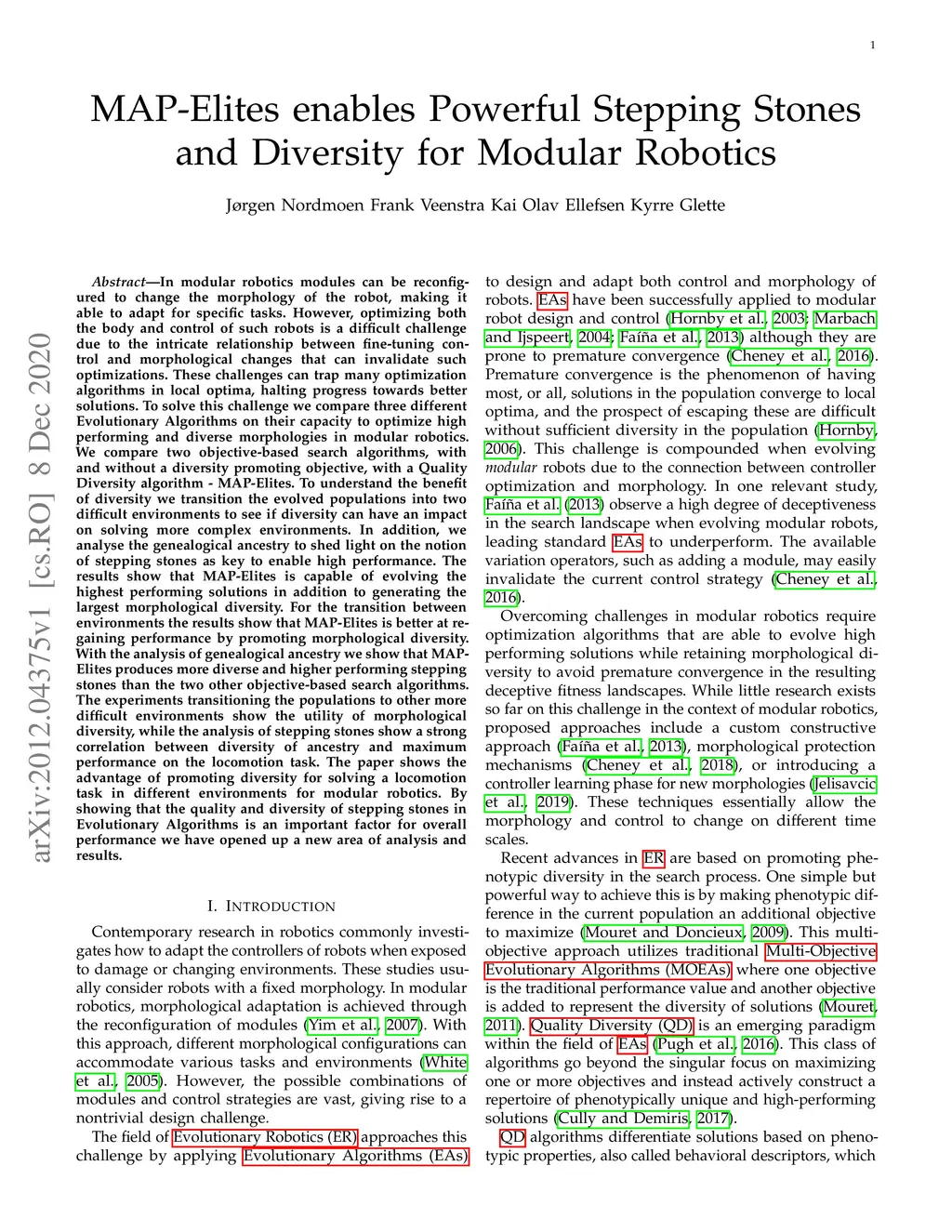 In modular robotics, modules can be reconfigured to change the morphology of the robot, making it able to adapt for specific tasks. However, optimizing both the body and control is a difficult challenge due to the intricate relationship between fine-tuning control and morphological changes that can invalidate such optimizations. To solve this challenge we compare three different Evolutionary Algorithms on their capacity to optimize morphologies in modular robotics. We compare two objective-based search algorithms, with MAP-Elites. To understand the benefit of diversity we transition the evolved populations into two difficult environments to see if diversity can have an impact on solving complex environments. In addition, we analyse the genealogical ancestry to shed light on the notion of stepping stones as key to enable high performance. The results show that MAP-Elites is capable of evolving the highest performing solutions in addition to generating the largest morphological diversity. For the transition between environments the results show that MAP-Elites is better at regaining performance by promoting morphological diversity. With the analysis of genealogical ancestry we show that MAP-Elites produces more diverse and higher performing stepping stones than the other objective-based search algorithms. Transitioning the populations to more difficult environments show the utility of morphological diversity, while the analysis of stepping stones show a strong correlation between diversity of ancestry and maximum performance on the locomotion task. The paper shows the advantage of promoting diversity for solving a locomotion task in different environments for modular robotics. By showing that the quality and diversity of stepping stones in Evolutionary Algorithms is an important factor for overall performance we have opened up a new area of analysis and results.
