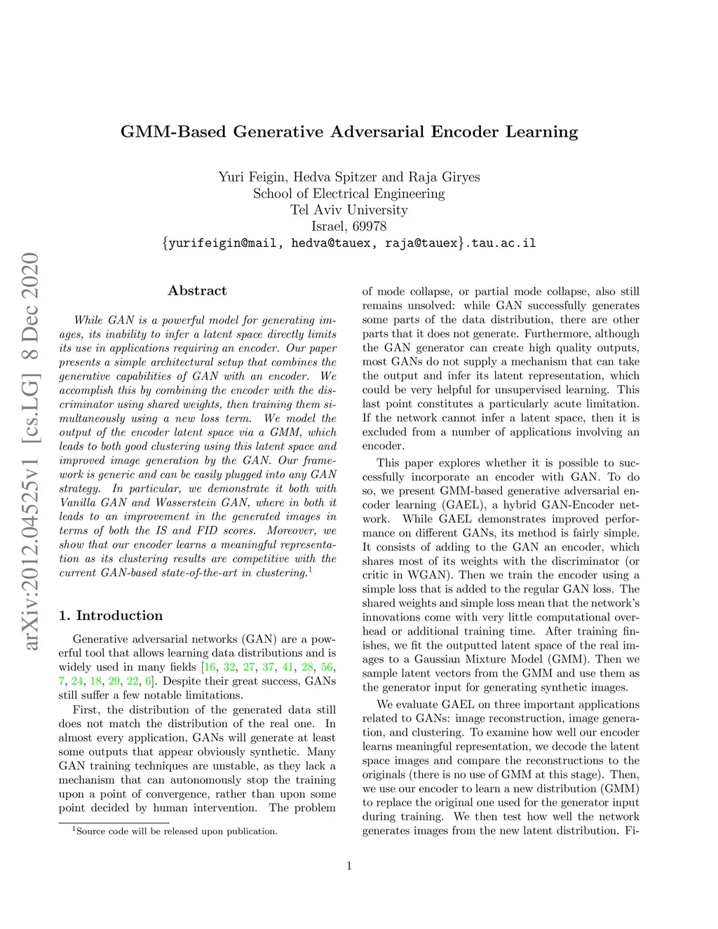 While GAN is a powerful model for generating images, its inability to infer a latent space directly limits its use in applications requiring an encoder. Our paper presents a simple architectural setup that combines the generative capabilities of GAN with an encoder. We accomplish this by combining the encoder with the discriminator using shared weights, then training them simultaneously using a new loss term. We model the output of the encoder latent space via a GMM, which leads to both good clustering using this latent space and improved image generation by the GAN. Our framework is generic and can be easily plugged into any GAN strategy. In particular, we demonstrate it both with Vanilla GAN and Wasserstein GAN, where in both it leads to an improvement in the generated images in terms of both the IS and FID scores. Moreover, we show that our encoder learns a meaningful representation as its clustering results are competitive with the current GAN-based state-of-the-art in clustering.