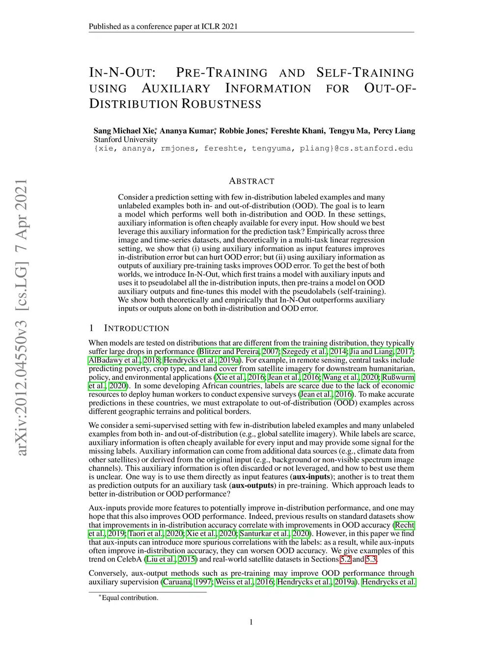 In-N-Out: Pre-Training and Self-Training using Auxiliary Information for