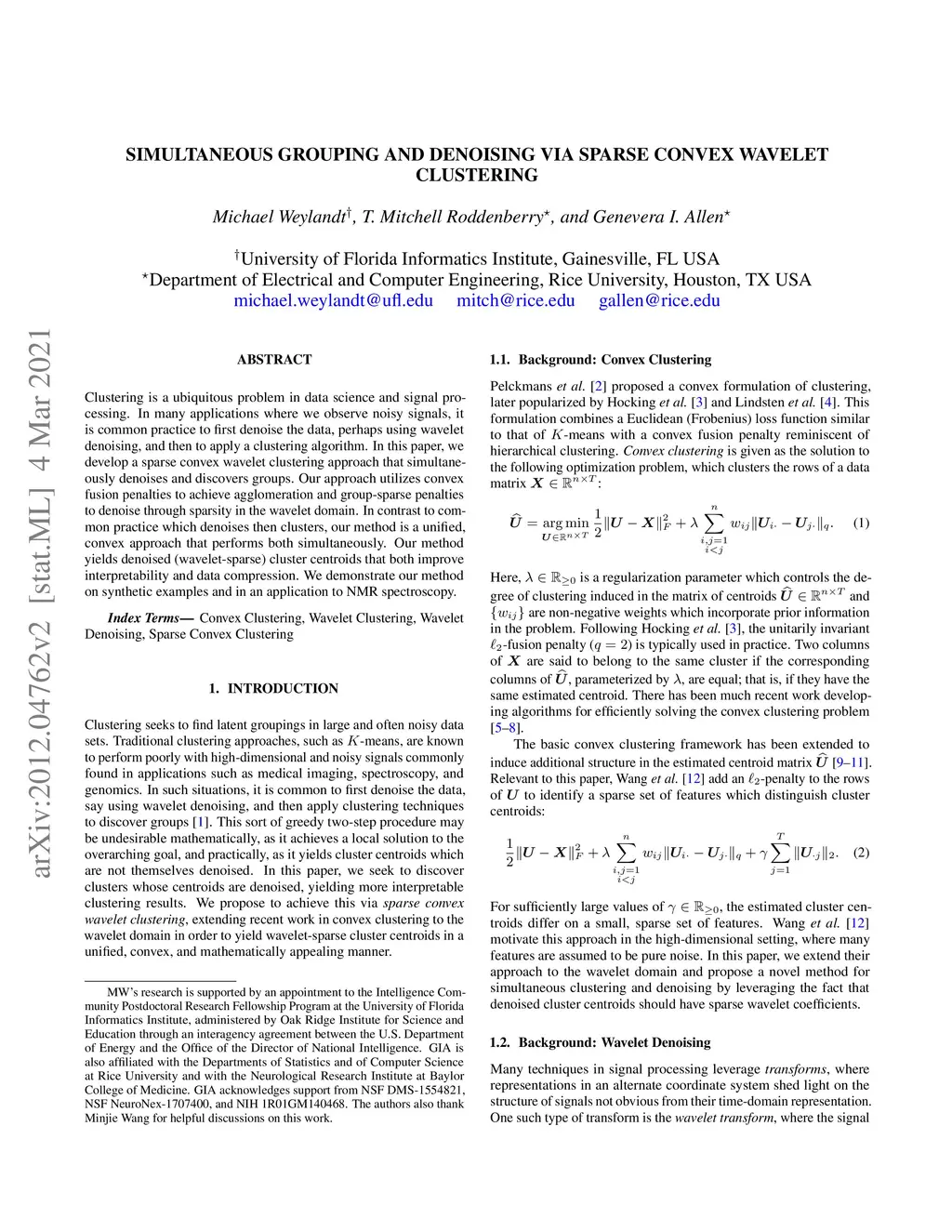 Simultaneous Grouping and Denoising via Sparse Convex Wavelet Clustering