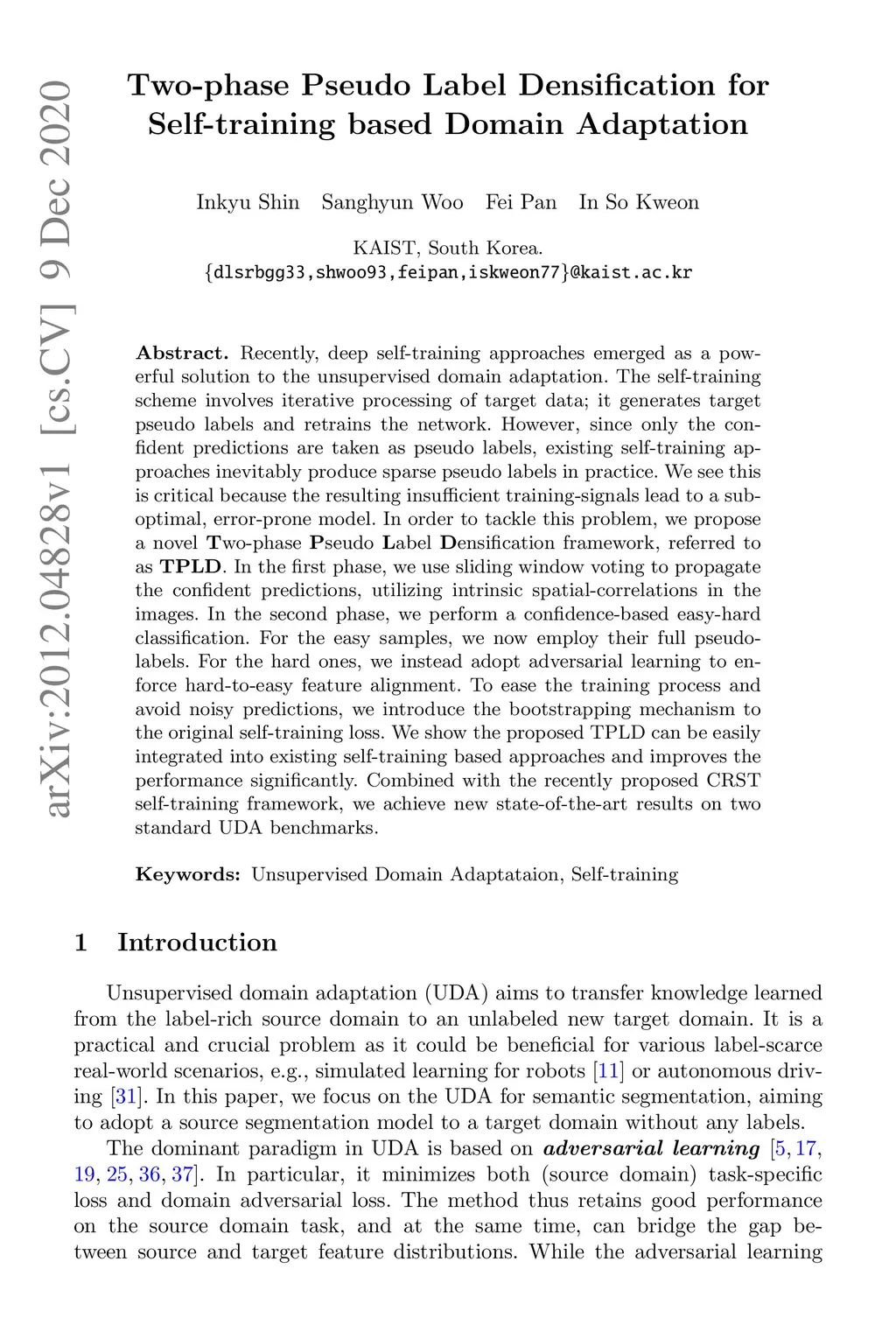 Two-phase Pseudo Label Densification for Self-training based Domain